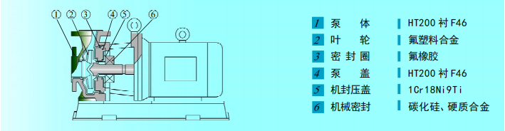 IHF(D)型离心泵是IHF型离心泵的派生产品,是为满足|HF离心泵性能要求同时受工作场地限制而研制的产品。泵体采用金属外壳内衬氟塑料,叶轮及泵盖均采用金属嵌件外包氟塑料合金压制成型,轴封采用先进的外装式波纹管机械密封,静环选用99.9%氧化铝陶瓷,动环采用四氟填充材料(或根据用户特殊工况专配其它材质),其特点是耐腐耐磨密封性好。