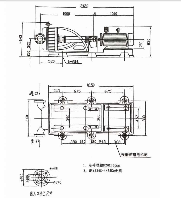 NSBLS系列氯气泵采用本厂专利产品(专利号:ZL93.2.300S63)的倾斜式椭圆形壳体,具备良好的零部件通用性。例如,可直接使用YLJ-750/0.3型氯气泵的基础、底座及进出口法兰安装尺寸;对于大流量型号NSBLS-950/0.30型和NSBLS-150/0.25型,仅需将原进口Φ150mm管道更换为Φ200mm管道,而出口管道尺寸保持不变,电机依然配备110KW,从而使气量由750m³/h提升至950m³/h或1200m³/h。流道简洁顺畅,便于维护