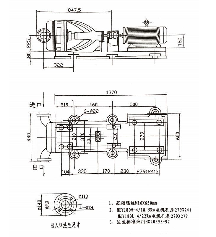 该系列氯气泵采用本厂专利(专利号:ZL93.2.300S63)的倾斜式椭圆形壳体设计,具有极高的零部件通用性。部分型号直接沿用YLJ-750/0.3型泵的基础、底座及进出口法兰安装尺寸;而在大流量型号中,仅需将进口管道由Φ150mm升级至Φ200mm,出口尺寸保持不变,同时继续采用110KW电机,从而实现从750m³/h提升至950m³/h或1200m³/h的气量升级。